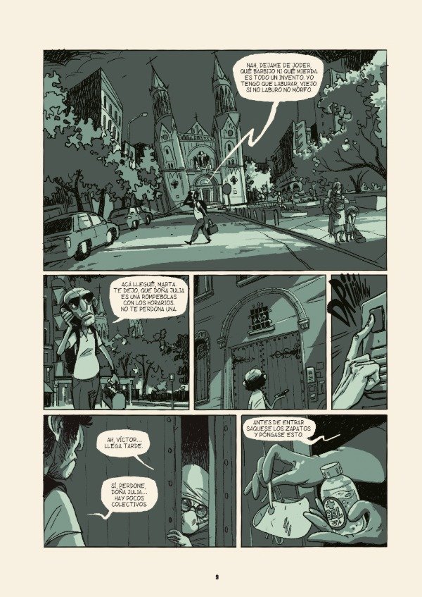 Construida en rounds de cuatro páginas durante la pandemia, como un cadáver exquisito vertiginoso donde el juego y la improvisación definieron el ritmo. Una trama pandémica, delirante y sorprendente que alterna entre dos perspectivas en una historia llena de personajes variopintos, barbijos y situaciones fuera de lo común.