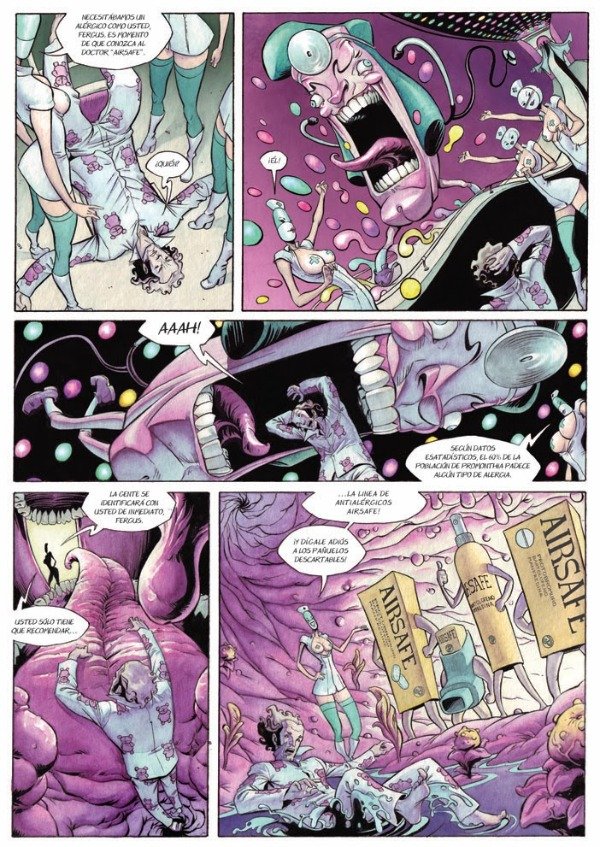 Imagínate lo que sería si el Spam fuera algo material, algo tangible. Imagínate que pasaría si en vez de un mensaje en tu casilla de correo, el Spam tomara forma de un ejército de personas destinadas a recomendarte cosas inútiles en forma permanente, por la calle, en el supermercado, en la playa, etc. Eso es lo que les está por suceder a los habitantes de la ciudad Promonthia si Fergus no cumple con su misión. Pero no es que a él le importe el bienestar de la sociedad ni nada parecido. Por el contrario, Fergus solo quiere es que su ex esposa Ingrid no le quite su adorado Mustang 72'. Pero Fergus no estará solo en su aventura. Todo el tiempo deberá hacerse cargo de una presencia molesta y peligrosa: su buen amigo Marcel y su legendaria mala suerte. Marcel es nada menos que "The Cubeman", el primer Hombre Logo, la mascota oficial de la empresa D-Cube. Su cabeza tiene un alto precio en la ciudad de Promonthia, un lugar donde la publicidad y el marketing dominan todo aspecto de la vida de sus habitantes. Editado por L'Atalante (Francia) e Historieteca (Argentina).